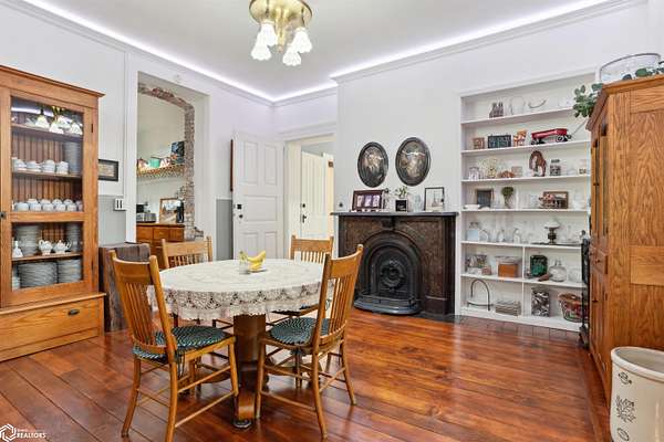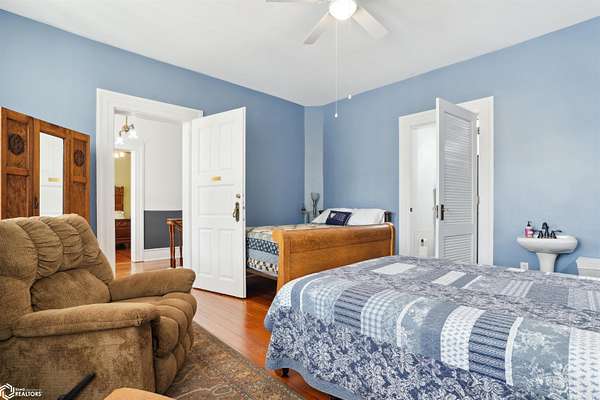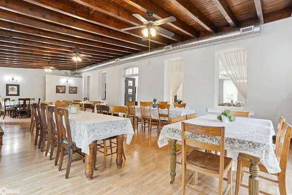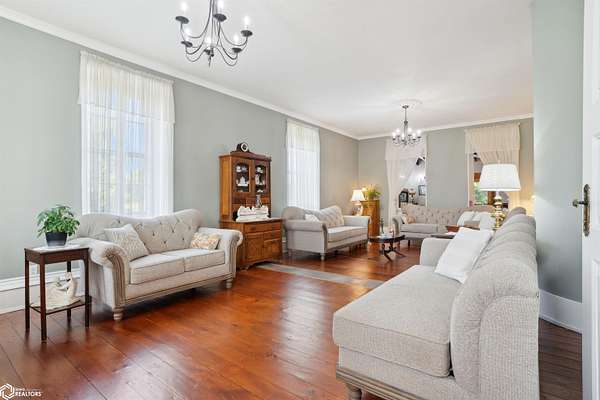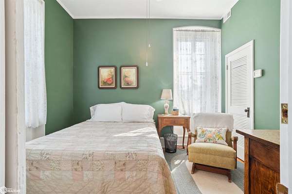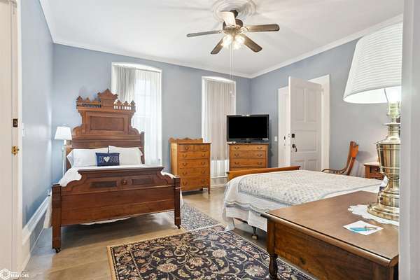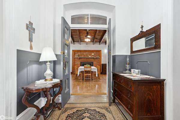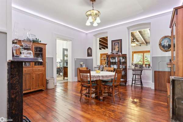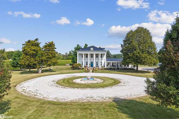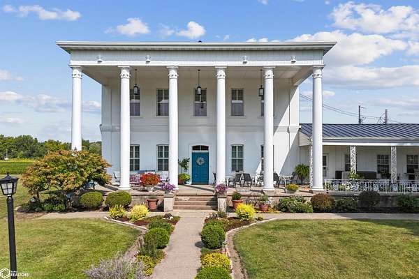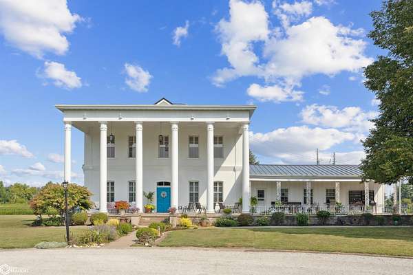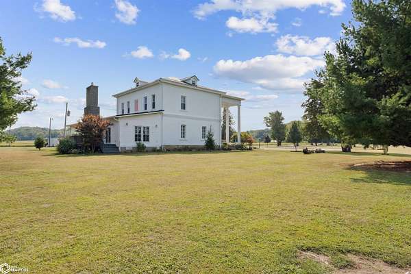 Discover the charm of this stunning 1850s-era guest house located just a quick drive to historic Nauvoo, Illinois. Spanning over 6,000 square feet across three beautifully finished levels, this stately home features 8 bedrooms, 5 full baths, and 2 half baths, making it the perfect setting for a thriving Bed & Breakfast or an expansive private retreat. Set on 9 peaceful acres, the property offers space to roam and relax, with classic architectural details like soaring 10-foot ceilings, tall windows, and wide hallways that reflect its historic roots. The large exterior columns demand your attention from the road. The details like the expansive front porch, circular driveway, and fountain add to the initial charm. Once inside you'll find expansive rooms, fireplaces, hardwood floors, and more. Despite its vintage charm, the home offers modern conveniences including a main floor bedroom, full bath, and laundry for accessible living and many updates as well. Whether you're continuing its legacy as a B&B or envisioning it as a grand family estate, this one-of-a-kind property blends timeless elegance with everyday comfort. Don't miss your chance to own a piece of history in the heart of the Midwest. Seller is related to the listing agent. Listing agent is licensed in Iowa & Illinois.