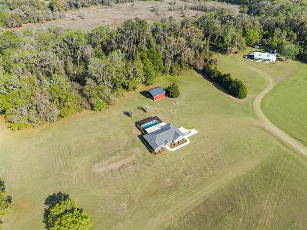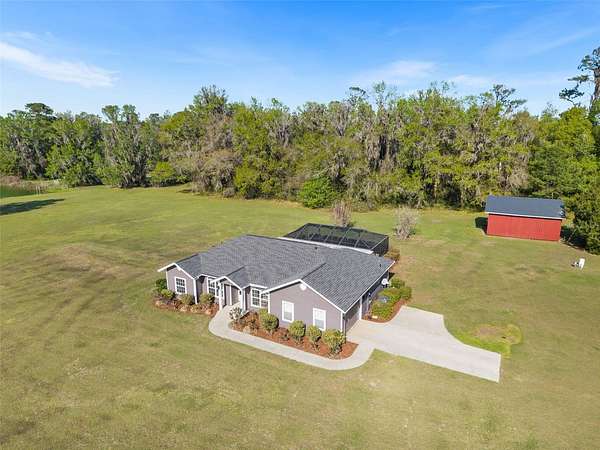 Under contract-accepting backup offers. Searching for a charming pool home with a pole barn situated on over 5 acres on the outskirts of Gainesville? Look no further! Properties like this do not become available often and present the perfect opportunity for you to live within minutes of shopping and restaurants while also enjoying the country lifestyle you’ve always dreamed of. This stunning home includes a newer roof (2022), newer HVAC (2021), new pool pump (2025), 3 bedrooms, 2 bathrooms, an office, and plenty of space outside to enjoy Florida living! As you pull down the long drive, you’ll appreciate the home being set far back off the main road, the sweeping views of green grass, freshened landscaping, and the tree-lined rear perimeter that backs up to a prairie, providing peace and mind of no future neighbors. Start your mornings with the sun rising over the trees and the sounds from a choir of birds. Take in the beautiful sunsets just outside your front door. As the night sets in, you’ll hear the resident owl, queuing the rise of the moon, opening the sky for you to find the twinkle of star constellations in your very own planetarium. This is a truly peaceful property. Step inside, and you’ll appreciate this well-maintained home with new interior paint, vaulted ceilings, and abundance of natural light with views of the pool. The heart of the home includes a living space, formal dining area, kitchen with breakfast nook, and office. The split floor plan offers a large primary bedroom with stunning views of the pool, large walk-in closet, and primary bathroom equipped with a dual sink vanity and walk in shower with bench. The two guest bedrooms are situated on the north end of home and include one shared bathroom with shower / jacuzzi tub combo. Step out back and you’ll appreciate the covered lanai and crystal clear screened-in pool with spacious patio space, perfect for hosting friends and family gatherings, pool parties, and barbecues. Additionally, the spacious pole barn is equipped with utilities, perfect for a workshop, storing an RV, boat, trailers and more. This home is a hot commodity in today’s market and won’t last long! Call today for a private tour!