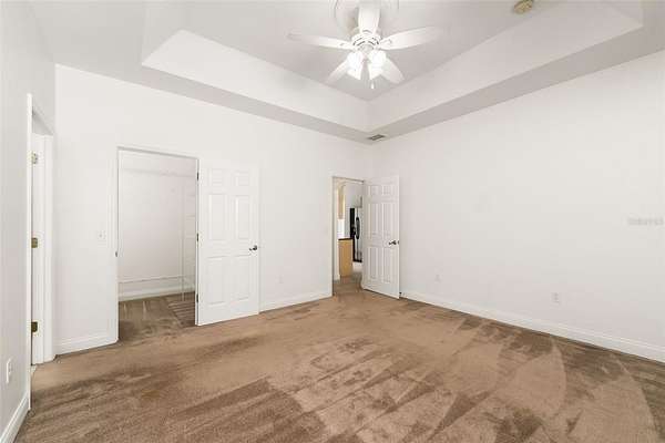 - Ceiling Fans(s), Eat-In Kitchen, Primary Bedroom Main Floor, Solid Surface Counters, Split Bedroom, Thermostat, Tray Ceiling(s), Vaulted Ceiling(s), Walk-In Closet(s)