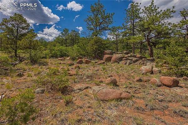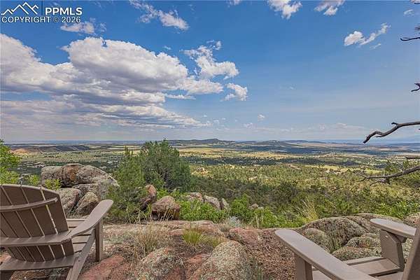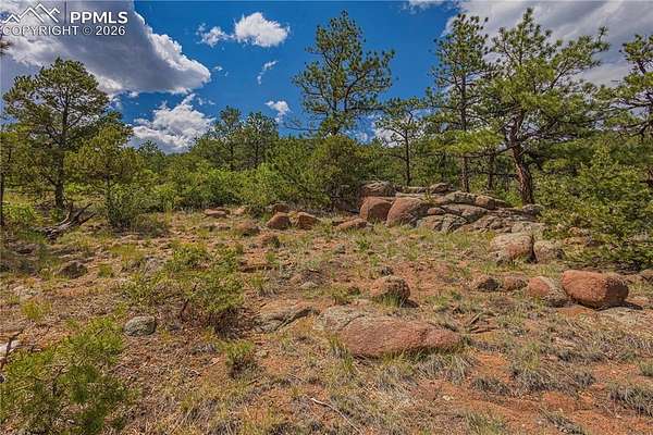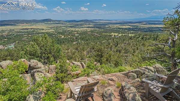 This luxury property makes it easy to imagine your custom home! With views that stretch over 100 miles, this awe inspiring gated community offers the ability to begin immediately on fulfilling your dream. HOA is reasonable and ready to help make everything possible. This particular piece of land which has a varied terrain ranging from flat mesa areas and rock outcroppings, to ravines and panoramic elevated viewing spots. The Highlands is a private enclave of just 23 executive home sites, each ranging from 35 to 40 acres. Paved roads throughout are maintained and plowed by the HOA, with dual gated access enhancing privacy and security to this retreat. You will never grow tired of this treed mountainside paradise. Complete with electricity at the roadside and a cleared building plot with driveway access, plus septic site location. This is all waiting for your builder's plans! Plat map available. A view that will leave you speechless is how you will describe this romantic rock garden viewing area perched on the high point of the property, making it a perfect sunrise location. Residents also enjoy access to 1,600 acres of preserved wilderness, with miles of trails for exploration. Only 20 minutes from Colorado Springs, the Broadmoor and Cheyenne Mountain and close to NORAD and Fort Carson, there simply isn't a better option for a custom build location which uniquely says, "this is Colorado"!