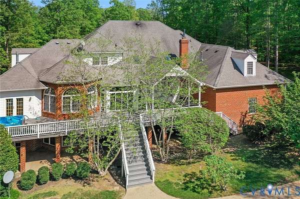 Come experience this stunning 7000+ sq ft/3 level custom-built transitional estate home in Chesdin Landing, where upon arrival, you are welcomed with a beautiful circular staircase, elaborately detailed trim-work and a spacious living room with fireplace. As you continue in, the natural light and beautiful views of the 16th fairway await you in the 2-story great room with 2nd fireplace. Next to the great room, sits the entertainer's dream kitchen with Brazilian granite countertops, double ovens, trash compactor, and wine bar. A breathtaking cathedral ceiling morning room is located directly off the kitchen for quiet mornings while enjoying your coffee. Located on the 1st floor, there is an extra room that would be perfect for an office/playroom. The 1st floor primary suite is a private oasis with hardwood flooring, a 2-sided fireplace into a sitting area with access to the rear deck and large hot tub for added relaxation. The spacious primary ensuite continues your oasis with large tub and walk-in shower along with 2 walk-in closets. The rear of the home takes in all outdoors with an enclosed back porch and spacious deck. Upstairs, there is a bonus room, 3 bedrooms and 2 full bathrooms. Additional entertaining/family space is in the basement with another bedroom and full bath all with access to a basement patio for more outdoor living space. There are 3 car and 1 car garages attached. A 1st floor generator adds comfort when a loss of electricity. Two tankless water heaters have been added as well. This grand home is situated on 2+ beautifully landscaped acres with irrigation. Enjoy luxury living in an exquisite estate home located in a peaceful community full of amenities. Community amenities include located in the waterfront community of Chesdin Landing with 18-hole golf course, clubhouse with restaurant/bar, fitness center, pool, canoe launch, walking trails, playground, tennis and pickleball courts. Book your showing today! Don't miss this opportunity!