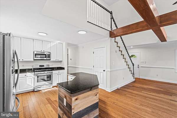 - Breakfast Area, Ceiling Fan(s), Combination Kitchen/Living, Entry Level Bedroom, Exposed Beams, Island Kitchen, Open Floor Plan, Soaking Tub Bathroom, Stall Shower Bathroom, Upgraded Countertops, Walk-In Closet(s), Wood Floors