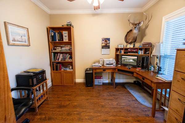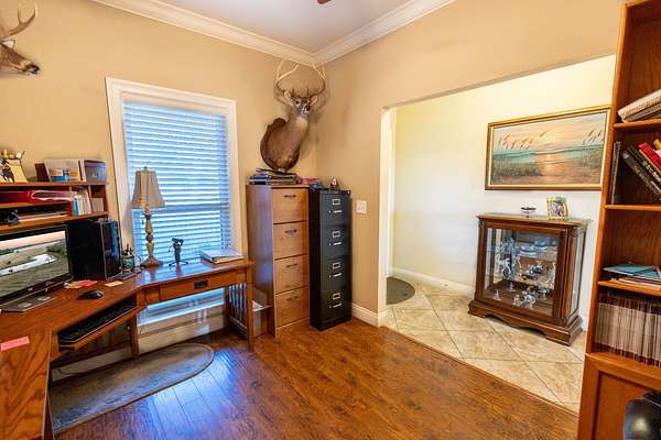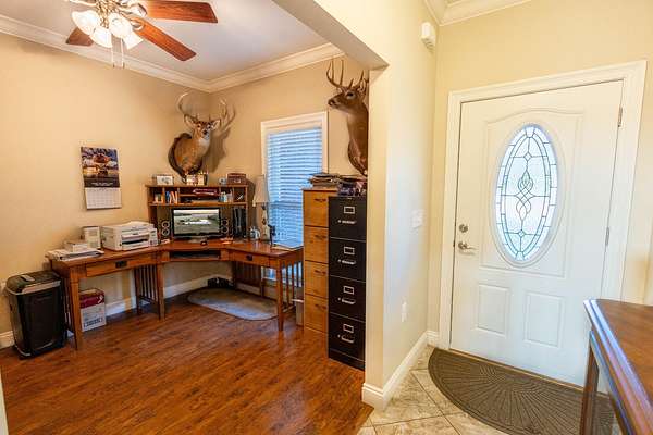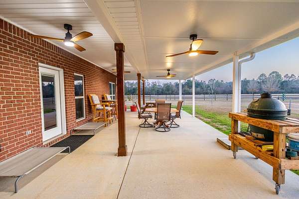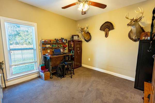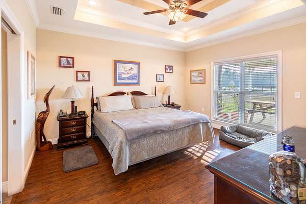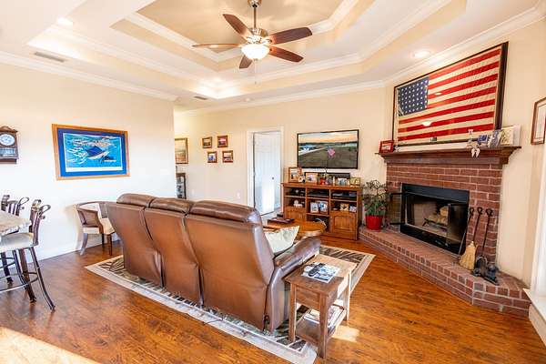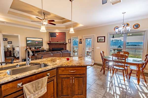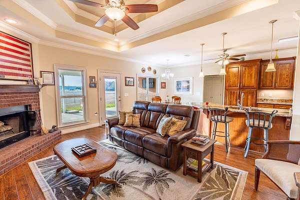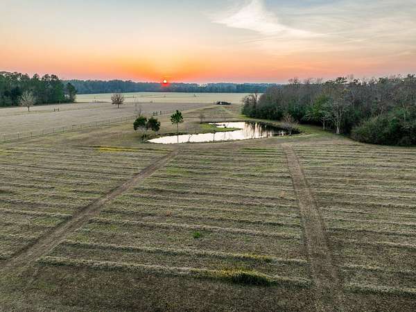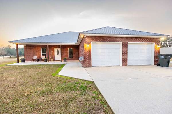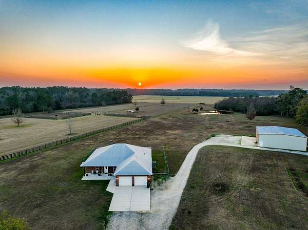 Down a private entrance secluded from a quiet stretch of paved county road, lies a place where life slows down and space opens up. 15509 County Road 83 in Elberta, Alabama is more than just a house. It's a retreat, a working homestead, and a gateway to the coastal lifestyle Baldwin County is known for. Set on 20+- acres of open, usable land, this secluded estate offers the freedom of country living with the rare convenience of being close to Mobile Bay and the Gulf of America. Built in 2014, the 3-bedroom, 2-bath home feels warm and inviting from the moment you step into the front foyer. Nine-foot ceilings and double tray ceilings in both the living room and primary suite add a sense of openness, while the wood-burning, gas-lit fireplace in the living room becomes the natural gathering place on cool evenings. Light from the beautiful sunrises and sunsets highlight the LVP and tile floors, granite countertops, LED lighting, and a layout that is both functional and enjoyable. A home office creates space to work without distraction, and the large primary suite features his and her closets, dual vanities, a tile shower, makeup station, and a private toilet room. Step outside to the covered front and back porches, where the sunrises and sunsets are breathtaking, friends and family can gather, and the view is your own land in each direction. In 2025, the screws on the metal roofs were changed, the chimney cleaned, and the septic tank was pumped. The story continues beyond the home. The land invites you to live the way you've always imagined, whether that means watching cattle graze, running equipment, or spending afternoons fishing in the pond stocked with bass and bream. A 50'x60' fully enclosed, three-bay shop with air conditioning and a bathroom opens the door for serious hobbies, a business, or weekend projects, while the 20'x50' pole barn and partially fenced and cross-fenced acreage add versatility and function for a small farm. Blueberry bushes are planted between the barn and pond. Everything about this property speaks to independence, privacy, and possibility. When you're ready to venture out, you're never far from what makes the Gulf Coast special, just 7 miles from Foley, 26 miles from Pensacola, 40 miles from Mobile, and just 18 miles from the white sand beaches of Gulf Shores and Orange Beach. Here, you can spend the morning fishing your own pond, the afternoon working the land, and the evening watching the sunset over the Gulf. This is a place to put down roots, build memories, and live life on your terms, a rare blend of privacy, purpose, and coastal convenience in the heart of Baldwin County. This property is shown by appointment only. Call today to schedule your private showing!