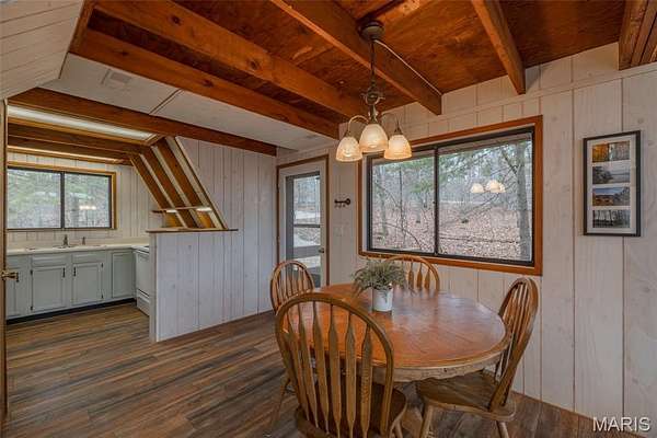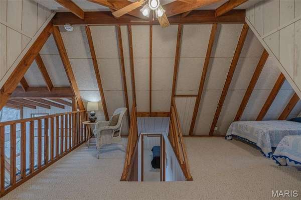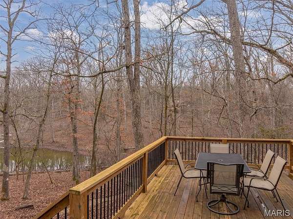 Summer is just around the corner and this lake front chalet at Innsbrook is ready and waiting for you. Clean, furnished, and truly move-in ready, this inviting getaway is tucked among the trees and surrounded by nature. Step inside and you’ll immediately notice the abundance of windows framing peaceful views of the woods and lake. The iconic A-frame living room is a showstopper, featuring three walls of glass that flood the space with natural light. On cool evenings, light the pellet stove and enjoy the warm, relaxing atmosphere that makes this chalet feel like a true retreat. The main level offers a spacious primary bedroom and full bath for easy living. The cute and bright kitchen is ready for meal prep. Upstairs, a generous sleeping loft includes two sets of bunk beds and two twin beds, providing plenty of room for family and guests.