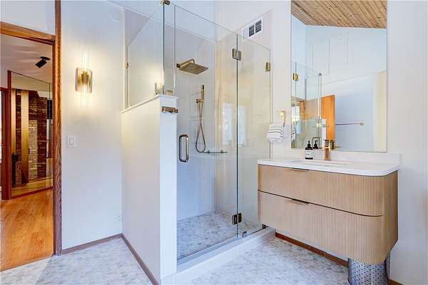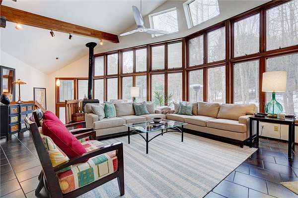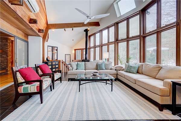 Custom built by renowned architect Victor Mellon, this exceptional residence is privately set on a serene, wooded lot and designed with an ideal floorplan for entertaining. Expansive windows throughout the home create panoramic views and fill the interior with cascading natural light, highlighting the thoughtfully designed spaces, natural midcentury style woodwork and beautiful finishes. The chef's kitchen features granite countertops and flows seamlessly into the main living areas, perfect for gatherings both large and small. The first-floor primary suite offers a private retreat complete with its own balcony overlooking the tranquil property. Extensive 2025 updates have transformed the home, including the addition of a stunning 7.5-foot in-ground pool, fully remodeled bathrooms, new hardwood flooring in both lower bedrooms, and refinished hardwood floors in the living room. All wallpaper has been removed and the entire interior professionally painted, creating a fresh, modern aesthetic. The upper level features brand new carpeting as well. The finished basement has been thoughtfully enhanced with the addition of a bedroom and an in-law kitchen, while the drop ceiling was removed to increase headroom and create a more open feel. Outdoor living is equally impressive with a beautifully restored African Ipe wood deck that has been sanded and oiled, new fencing, extensive tree removal, and comprehensive yard cleanup and de-thatching. A new front concrete walkway enhances the home's curb appeal, and the entire exterior has been freshly repainted. Additional updates include inspected chimneys and fireplaces, updated electrical service, a new roof installed in 2018, and two new furnaces added in 2020. A rare opportunity to own an architect-designed home that blends privacy, thoughtful design, and extensive modern updates in a truly beautiful natural setting. Delayed Showings Tuesday 3/10/26 at 10 AM. Negotiations until Monday 3/16/26 at 11 am.