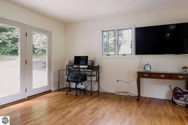 Est $7,832/mo47 rolling Leelanau County acres is the setting of this one level, updated home near Suttons Bay. Beautiful acreage is a mix of hardwoods, planted pines and open ground. You will never tire of wandering your private park! Horses allowed by zoning. Barbeques or solitary afternoons are afforded by the private patio! Private primary bath w/tile shower. Main floor laundry, fireplace, original wood floors and large dining area. Full basement with finished areas and loads of storage! 30x60 heated pole building: concrete floor, 3 overhead doors, 1 sliding door and plumbing. Move in ready! Owner will consider selling west 20 acres separately. Floor Plan in camara roll.