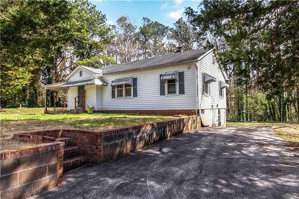 Rare 3.15 acre property in Cobb County with redevelopment and subdivision potential! This charming 3 bedroom, 1 bathroom home sits on a spacious 3.15 acre wooded lot in Austell, offering privacy and future possibilities. Inside you'll find original hardwood floors, custom built-ins, and 1,012 square feet of living space full of character. The home also features a full basement with private exterior entry and two separate driveways, providing flexibility for storage, workshop space, or future expansion. The expansive property offers a peaceful setting with a creek and mature trees, while still being conveniently located near I-20, shopping, restaurants, and major commuter routes. With the amount of land and location, this property offers excellent potential for investors, builders, or buyers seeking space and future development opportunities (buyer to verify subdivision possibilities).