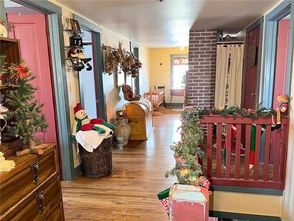 A Homestead That Feels Like a Warm Hug! Welcome to a place where life slows down, food is grown with intention, and every season brings something to enjoy. This 15-acre homestead offers a beautiful mix of rolling pasture, wooded land, and organically productive crop space--from apple trees to expansive garden areas--perfectly imperfect for buyers dreaming of a truly grounded lifestyle. The 5-bedroom, 2-bath farmhouse welcomes you with a covered front porch and an expansive screened-in back room, ideal for summer evenings and quiet morning coffee. Inside, the warmth of a wood stove in the dining room creates an inviting gathering space, while the living room features a beautiful stone gas fireplace for cozy nights in. An additional freestanding gas fireplace in the main-level family room.