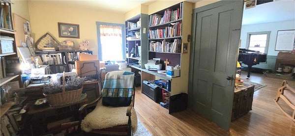 The kitchen's open shelving evokes the charm of yesteryear, blending farmhouse appeal with everyday functionality. A main-floor bedroom, currently used as an office, provides flexible living options. Upstairs, you'll find four additional bedrooms, a full bath with laundry, and a walk-up attic offering generous storage space. The lower level is designed for both gathering and creativity, featuring a family room, theatre room, storage areas, and a dedicated canning cellar--a true nod to homestead living.