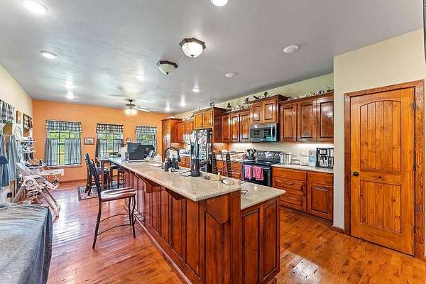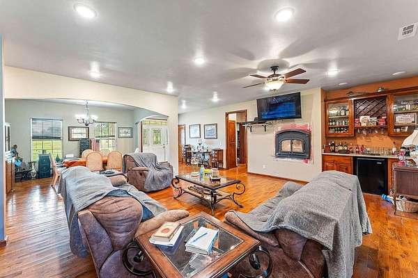 - Attic Storage, Ceiling Fans, Eat-in-Kitchen, Smoke Detector, Split Floor Plan, Walk-In Closets, Wet Bar, Woodstove