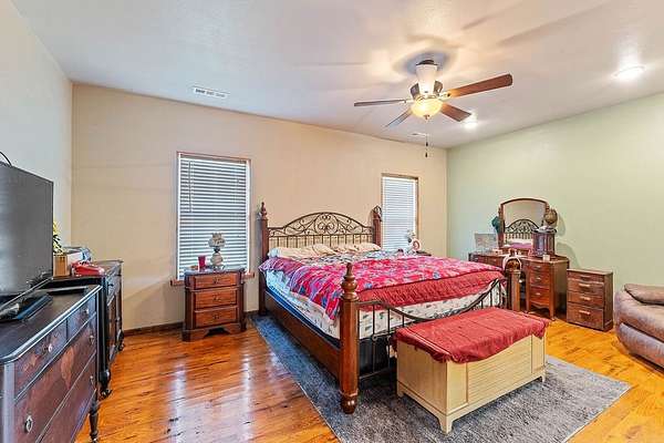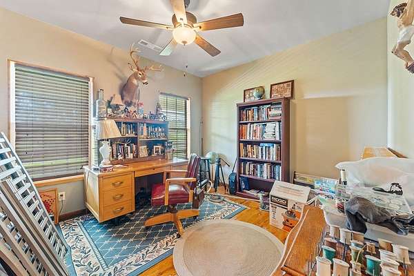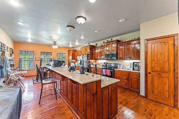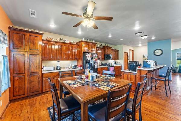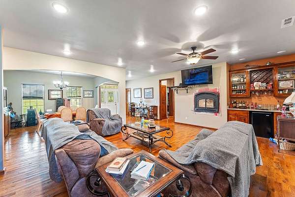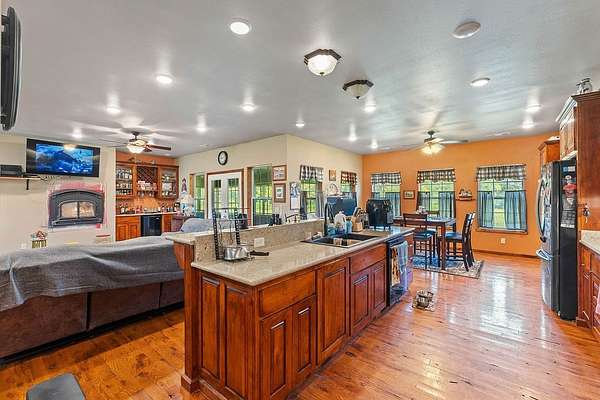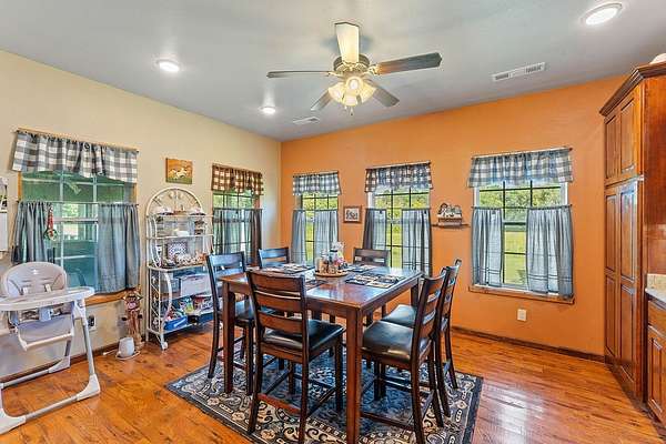 - Attic, Ceiling Fans, Eat In Kitchen, Split Bedrooms, Walk In Closets, Wet Bar, Wood Burning Stove