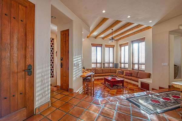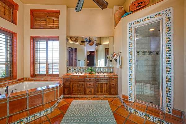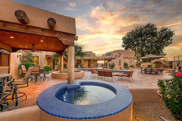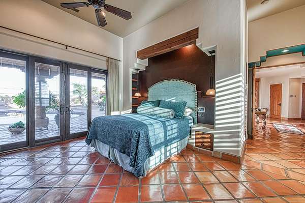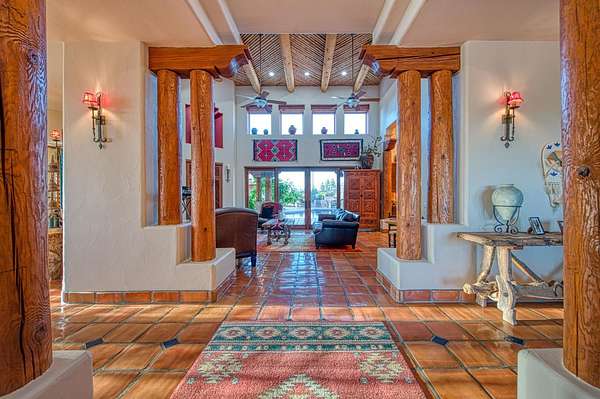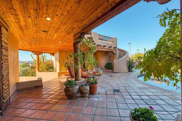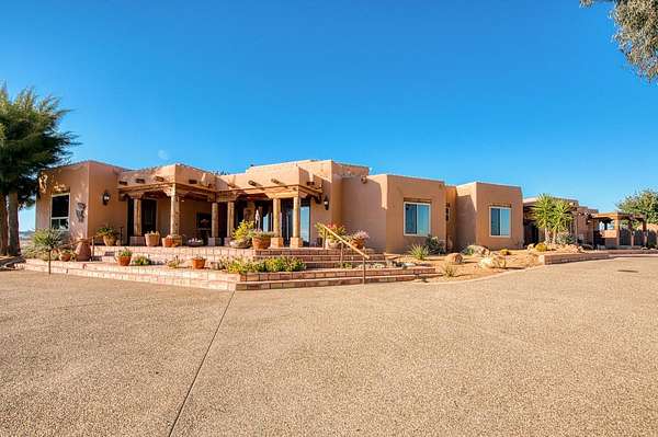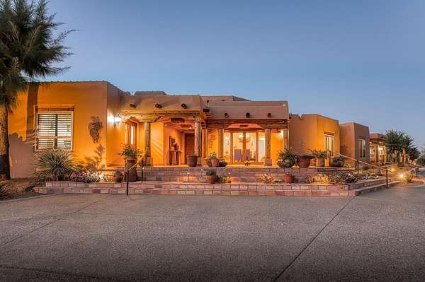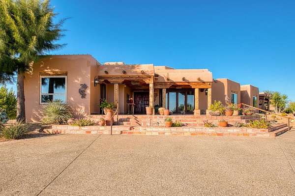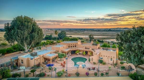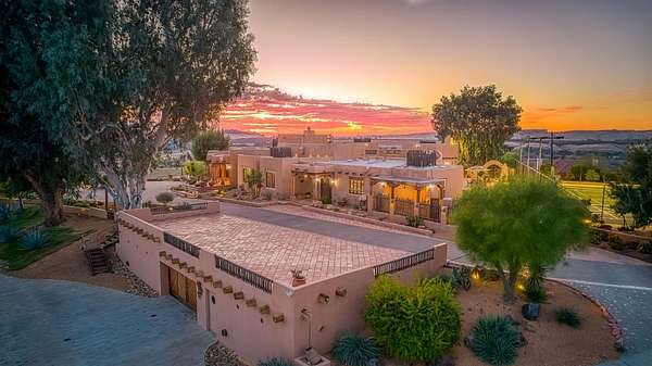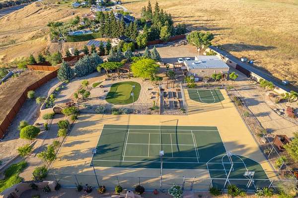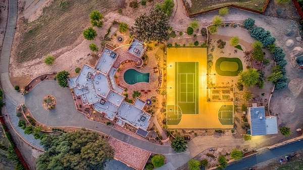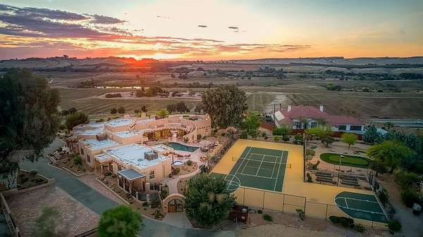 There are good homes, great homes, and then there's the extraordinary. Perched atop an elevated six-acre bluff, the home captures breathtaking 360-degree views---river, mountain, and valley vistas on one side, and sweeping pasture on the other. A living canvas that evolves with every hour. Spanning approx. 5,300sf, this expansive single-story features 4 bedrooms, 4 baths, plus two detached one-bedroom guest suites---ideal for multi-generational living or private accommodations. The primary suite is a true retreat with stunning views, a spa-inspired bath, spa tub, walk-in shower, dual vanities, and generous closets. Throughout the house, rich Saltillo tile and handcrafted woodwork create warmth and timeless character. The open layout flows between living room, oversized family room, and a chef's kitchen with a six-burner Wolf range, triple ovens, warming drawer, Sub-Zero refrigeration, freezer drawers, and dual copper sinks. Designed for both entertaining and everyday comfort, the home also includes a sunken sitting room, media room, and a large laundry room with additional Sub-Zero fridge. An elevator leads to a 3000sf 14-car underground garage and 1,600-bottle, temp.-controlled wine cellar with tasting area. Thoughtfully concealed, the garage maintains the estate's pristine aesthetic while offering seamless access. Resort-style grounds feature a pool, outdoor living spaces, built-in BBQ, lighted tennis court, sport court, putting green, and rooftop deck. A private helipad offers effortless access to business, entertainment, and nearby coastal and national park destinations. Bed, bath, and sq. ft is different than tax records, if important, buyer to verify.