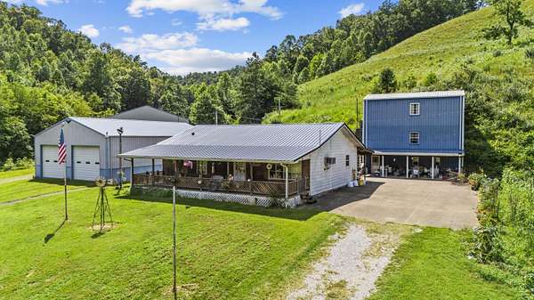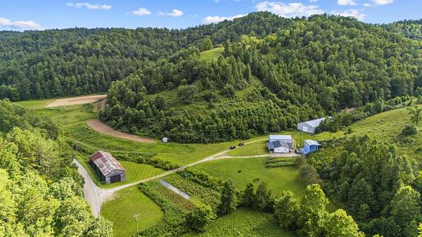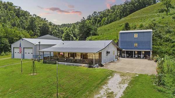 Rare 158-acre surveyed farm just 10 minutes from Paintsville Lake offers income potential, recreation, and rural living. Timbered ~30 years ago, it's rich with wildlife and miles of trails-perfect for hunting, horseback riding, or ATVs. Four fiberglass hunting houses and open fields suit pasture, hay, or food plots. The property includes a 3-bed, 1-bath home with full concrete basement, HVAC w/gas backup, metal roof, mix of vinyl/wood siding, and a charming front porch. A drilled well provides water (county water available) plus a prime garden spot. Outbuildings include a large tobacco barn, cattle barn, oversized 3-bay garage w/electric doors & concrete floors, and a pole barn w/electric & gravel floors. Main outbuilding features storage/guest room/cellar w/bath, plus two apartments-each with private bath & closet. Whether you're looking for a working farm, a hunter's paradise, or a multi-use property with income opportunities, this expansive 160-acre estate delivers space, versatility, and endless possibilities.