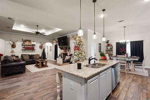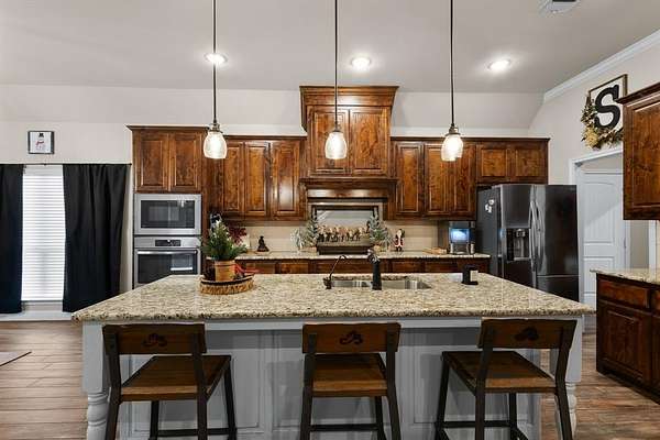 Experience serene country living just minutes from the LBJ Grasslands in this beautifully maintained 3-bedroom, 2-bath, plus an additional flex room, home on approximately 2 acres. With 2,302 sq ft of comfortable living space, this property combines modern upgrades with spacious rural charm. Inside, you'll find an inviting open layout featuring granite countertops as well as a well-appointed kitchen. Energy efficiency comes built in with solar panels and a whole-home water treatment system. Step outside to enjoy a covered back patio, perfect for relaxing evenings, outdoor dining, or watching wildlife in the peaceful surroundings. The land offers room to roam, garden, or simply enjoy the privacy and quiet. Whether you're seeking space, sustainability, or the tranquility of true country living, this property is ready to welcome you home.