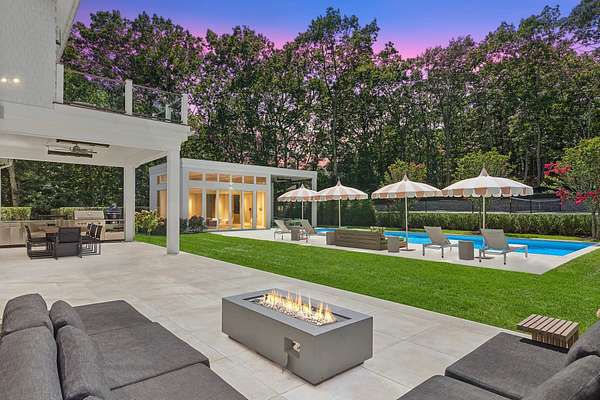 Est $51,224/moExquisitely designed with a modern contemporary Miami/Palm Beach aesthetic, this exceptional 3+/- acre new construction estate is the true essence of Water Mill opulence. The fully furnished 9,400 SF residence features 8 en-suite bedrooms, 12 bathrooms, a heated gunite pool with hot tub, a glass pool house, and an all-weather tennis court. On the meticulously finished lower level is a recreational game room, glass-partitioned gym, sauna, spa, steam room, and a state-of-the-art movie theatre. The crown jewel is an impressive cocktail bar lounge and nightclub inspired by the exclusive Annabel's members-only club in London. Nestled amidst picturesque open fields, this modern gated estate in Water Mill is a testament to luxury living.
