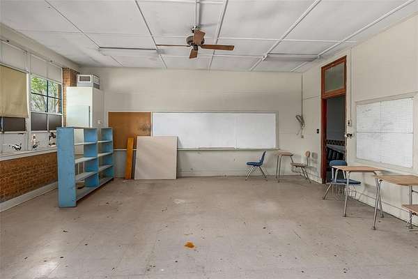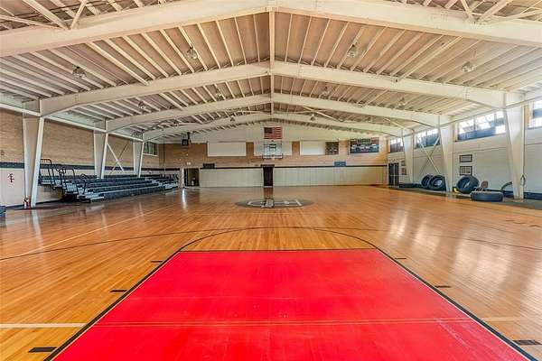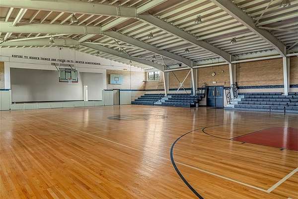 The expansive main building blends historic charm with modern amenities, featuring 7 flexible rooms ideal for bedrooms, offices, or studios. A private one-bedroom apartment with a full kitchen offers comfortable onsite living. Two former classrooms have been converted into a spa area with an indoor hot tub and spa pool (may convey). A full-size gymnasium includes a professional basketball court, bleachers, locker rooms, and a concession stand. Two kitchens, six bathrooms, and 10 individual showers support large groups or commercial use. Dedicated office space and preserved classroom architecture add character.