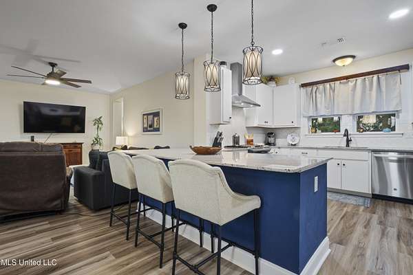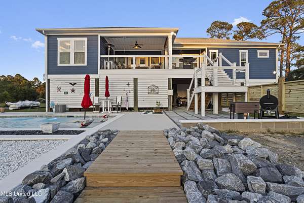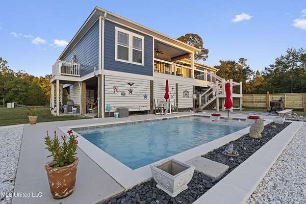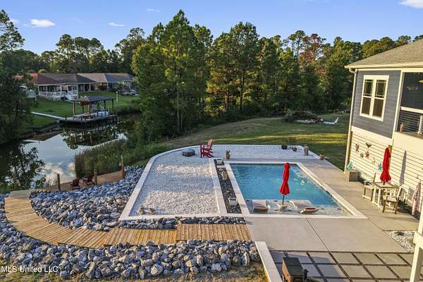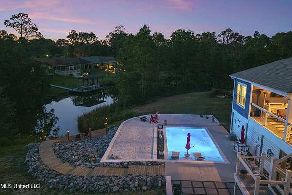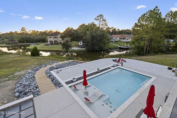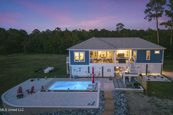 Are you looking for your own piece of paradise on over 6.55 +/- acres with not just one, but two boat docks, a private boat ramp, and a sparkling pool? This extraordinary property offers it all. Built by the highly regarded Butler team, this home is better than new and was thoughtfully designed to capture water views from nearly every window. The open-concept kitchen and dining area flows seamlessly into the living space, creating an inviting setting for entertaining or relaxing with family. If fishing or bing on the water is where your heart lies, this home has deep water access on St. Martin Bayou, providing you direct access from Bay Back to the Gulf of Mexico. You can fish right off your pier or jump in your boat and have all the fishing your heart could desire! You're also a quick trip to the barrier islands for waves and white sand beaches! Inside, you'll find two spacious guest bedrooms with a full bathroom on one side of the home, while the primary suite enjoys its own private wing. The primary retreat is complete with a spa-like bathroom, an oversized walk-in closet, and abundant storage. Luxury touches throughout the home include custom finishes, quality craftsmanship, and natural light that highlights the beauty of every room. Step outside to your back porch where you can take in sunsets over the water or watch fish jump from your private shoreline. The stunning gunite pool with a sun-shelf tanning ledge offers the perfect place to relax and unwind. Underneath the home, there is plenty of covered parking for vehicles, boats, and recreational toys, while an air-conditioned tool shed provides the ideal space for projects, hobbies, or climate-controlled storage. This unique waterfront property includes six additional lots that combine with the main home site to total 6.55 +/- acres. The possibilities are endless-build additional residences, design a family compound, or maximize the short-term rental potential of this rare coastal retreat. Schedule your private showing today and experience the luxury, space, and unmatched lifestyle this one-of-a-kind property has to offer.