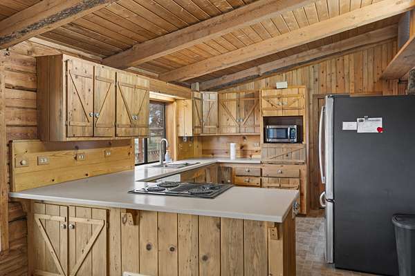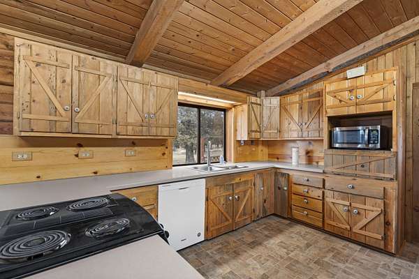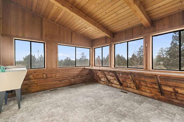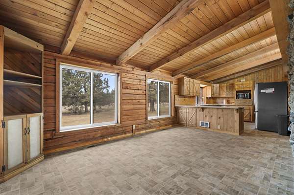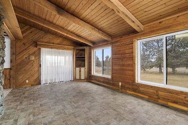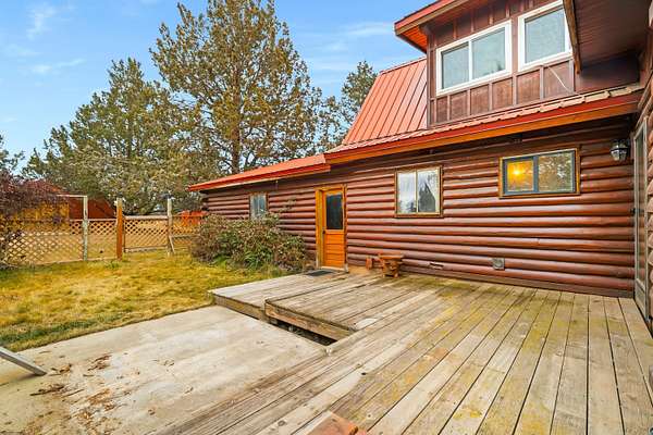 Build your dreamy Central Oregon lifestyle in this 3,246 sqft. custom log cabin, perfectly placed on 5acres near the front of Crooked River Ranch. This 3bed, 2bath home features a dramatic large loft, with Cascades views, a primary suite with a relaxing sunroom, & extra space for all your storage needs. This property includes 3 horse stalls, a detached & heated workshop with power, and an oversized garage. The dedicated garden space with front & backyard sprinklers offer endless outdoor utility while mature trees wrap the home in a sense of privacy creating a forest-like retreat while maintaining easy access to Chinook Rd. With its massive square footage & high-quality bones, this property is a rare opportunity to create your customized grand equestrian estate. The exterior logs were professionally refinished and resealed in 2023, providing a beautiful, durable shell ready for your interior updates.