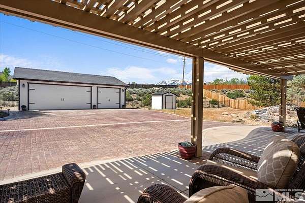 Beautiful South Reno Single story on over an acre with mountain views. NO HOA fees. Lots of potential with this large lot. Home sits at the end of a cul-de-sac and offers 4bd/2.5ba with an attached 3 car garage and a detached fully insulated 3 car garage with room for more! New roof in 2022. RV and boat parking. Fenced back yard with 2nd interior fencing, landscaped with a water feature, mature trees and covered patio. Close to shopping, hiking, Mt. Rose, skiing, schools, and Lake Tahoe. Beautifully maintained. Clean Home Inspection report included, most items already repaired. Updated Kitchen and floors. All interior appliances included. Clean and ready to move in!! Back garage is locked and can only be seen with Listing Agent. Call for an appointment to see.