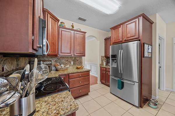 - Blinds, Bonus Room, Ceiling Fans, Electric Range, Fireplace, Granite Counter, Laundry/Utility Room, Microwave, Plantation Shutters, Separate Dining Room, Split Floor Plan, Wood Cabinets