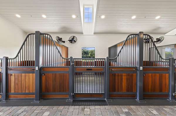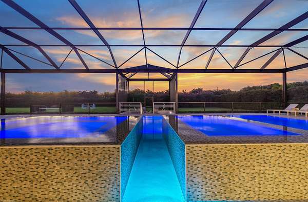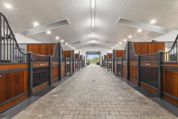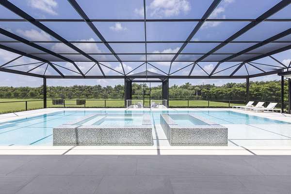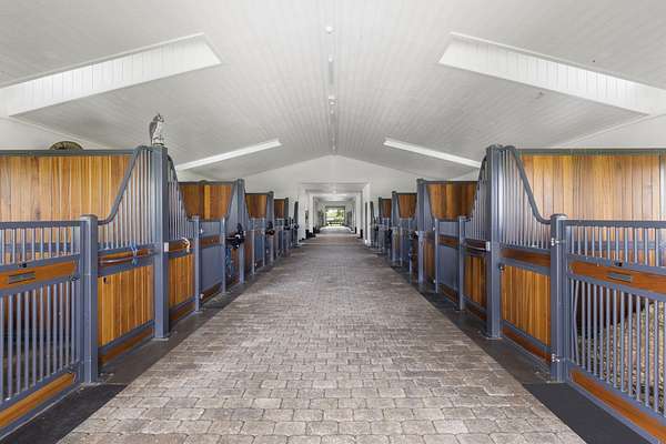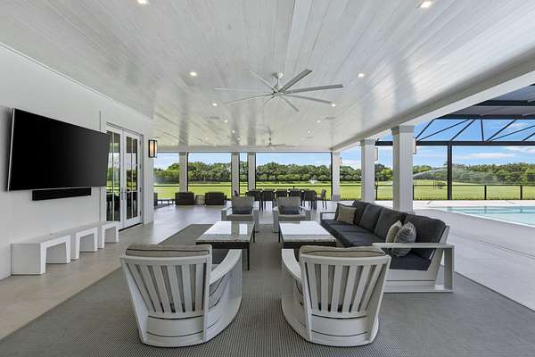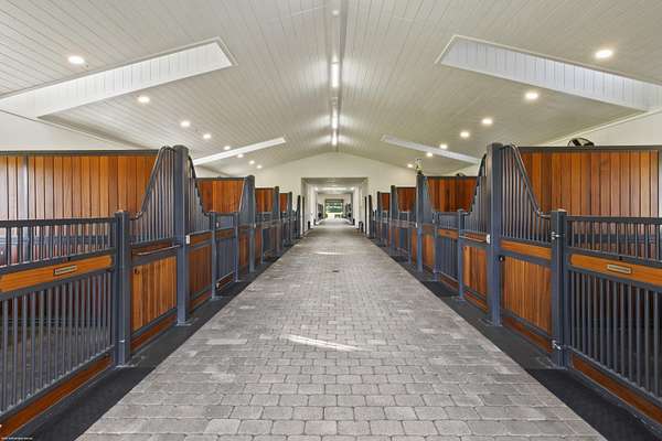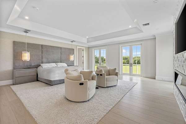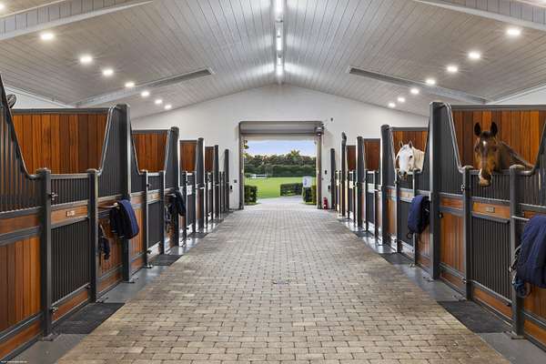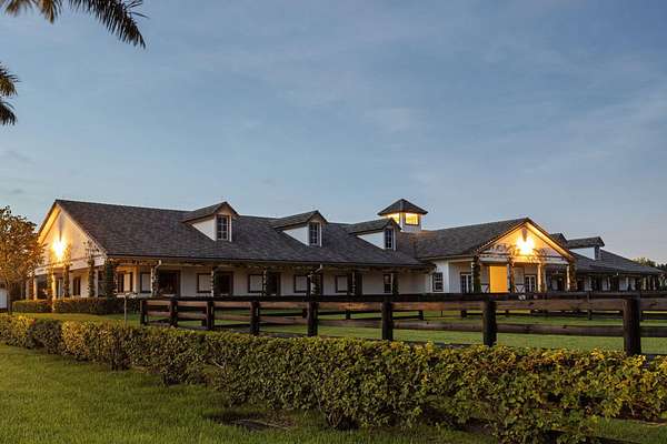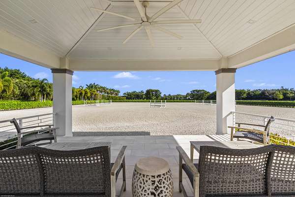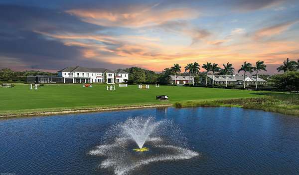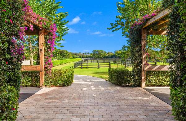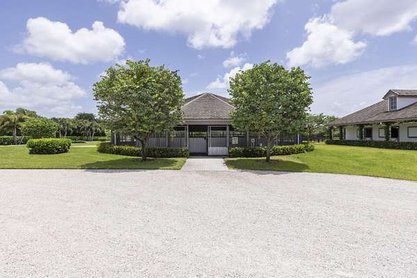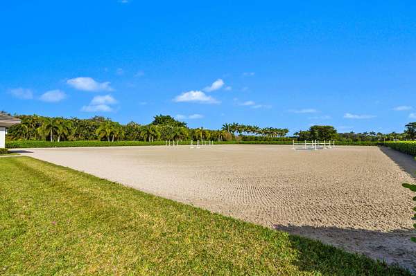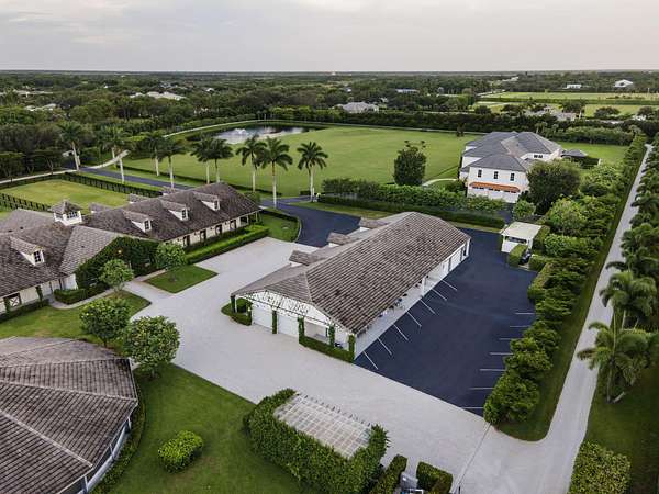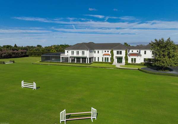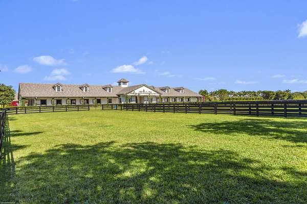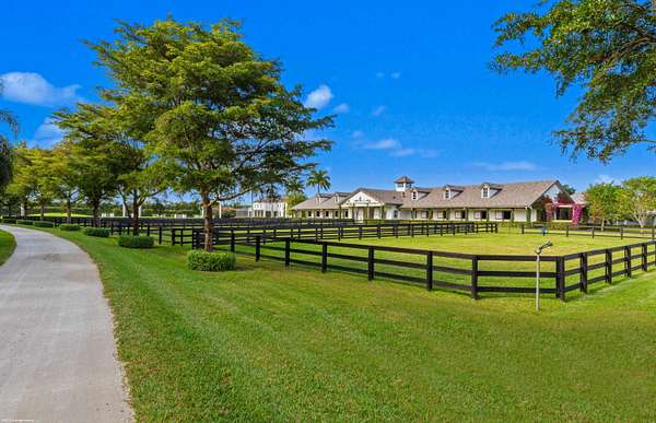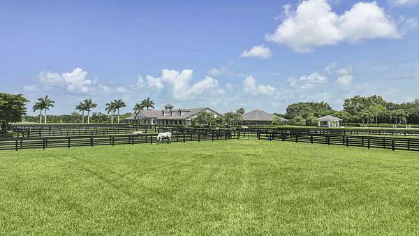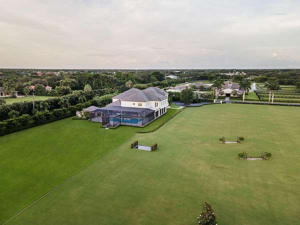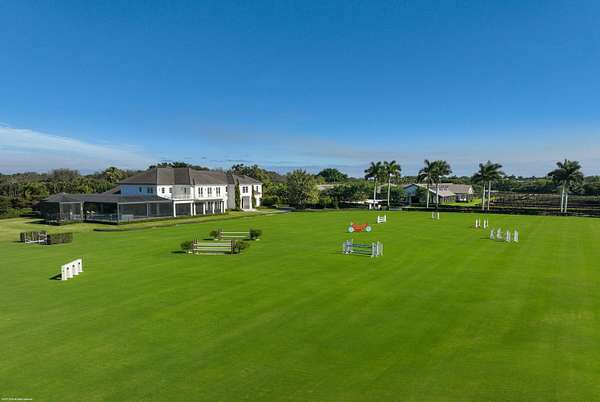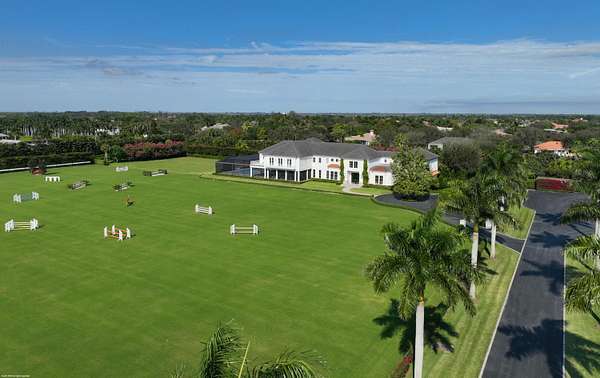 Nestled within the prestigious gated enclave of Palm Beach Point, just one mile from the world-renowned Wellington Equestrian Festival, this impeccable 23-acre estate represents the pinnacle of luxury equestrian living. Completed in 2023, the sprawling 11,000+ sq ft residence is a masterpiece of new construction, where no detail has been spared--from a state-of-the-art restaurant-grade kitchen to an extraordinary pool oasis featuring a zero-edge saltwater pool, oversized Jacuzzi, and innovative chiller system for therapeutic recovery. Equestrian excellence abounds with a pristine 20-stall center-aisle barn, dual tack rooms, commercial laundry, and expansive grooming and feed stations, complemented by an oversized all-weather arena, 14 lush paddocks, and a 3.3-acre Grand Prix field
