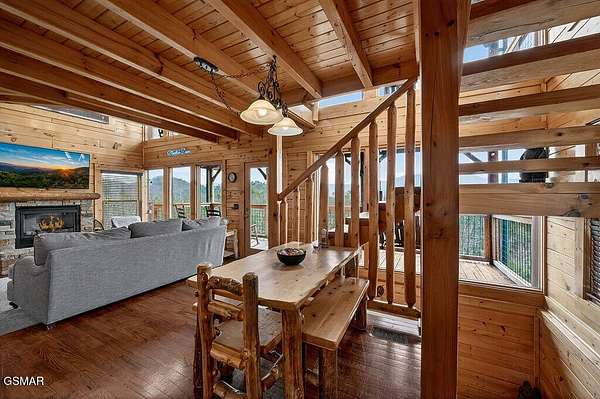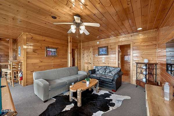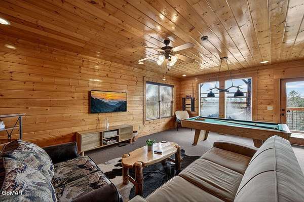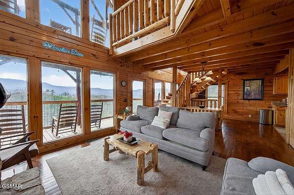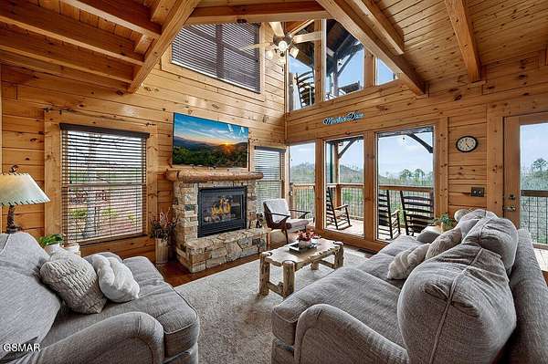 Tucked high on a ridge less than 10 minutes from the Parkway, this light-filled three-level cabin sits on over 1.5 private acres and offers some of the most commanding views in the Smokies. From all three levels of decking, guests take in unobstructed panoramas of Mount LeConte and all four major peaks in the region-a rare vantage point that immediately separates this property from the typical rental cabin stock. With a full bed and bath on each level, plus a sleeper sofa, the layout is ideal for groups of up to ten, giving guests both togetherness and privacy. The property performs well as a short-term rental, but also lends itself to use as a private second home or eventual full-time residence. Recent improvements include a new private well and hot tub installed in 2022, a brand-new washer and dryer in 2023, and a new dishwasher in 2024. The HVAC systems are between three and six years old, and the roof is approximately seven to eight years old, giving a buyer peace of mind on the big-ticket systems. The cabin is being sold fully furnished and is located in a quiet, unregulated setting-offering seclusion, but still within striking distance of Dollywood, Rocky Top Sports World, and all the attractions of Gatlinburg and Pigeon Forge. This is a true view-forward investment, with the kind of scenic backdrop that commands repeat guests and premium nightly rates. Cabins with this combination of privacy, acreage, and elevation rarely come available this close to the action. For those looking to own a top-tier performer in the Smokies, this one delivers.
