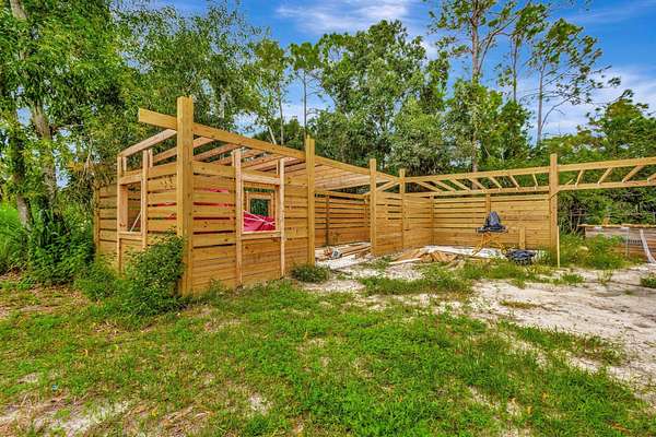 Welcome to your 5-acre sanctuary, an ideal canvas for your agricultural and residential aspirations. This property includes building materials to finish the structure, allowing you to customize it to your needs. Modern conveniences are at your fingertips with a 200 AMP electric service installed in 2022, a newly drilled well from August 2023 equipped with a 30-gallon pressure tank, and a 1000-gallon septic system scheduled for installation in June 2025. The entire property is securely enclosed with a chain-link fence, providing peace of mind for the safety of your animals. The mostly cleared land is beautifully dotted with native trees and plants, enhancing the natural beauty of the surroundings. Access is a breeze with two 12-foot gates.