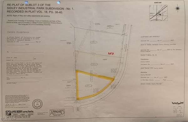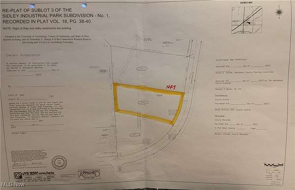 - $309 - LOT #3 SIDLEY IND PARKSUB 1 Re-Platting of parcels will change taxes accordingly.