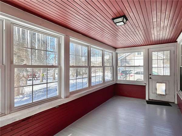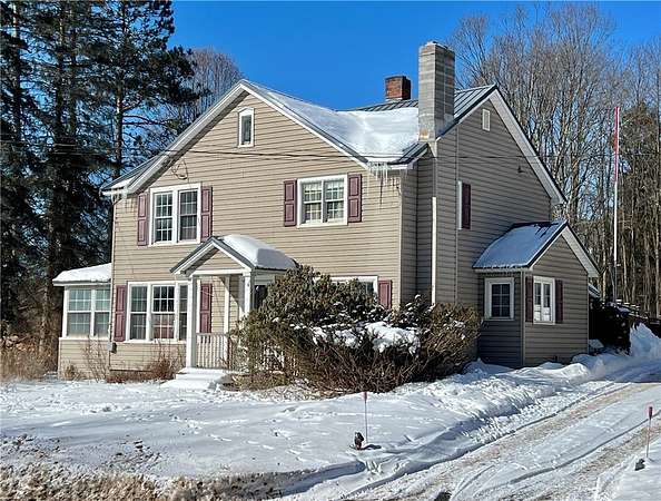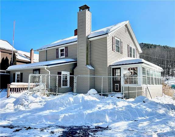 Move-in ready 3-bedroom, 2200+ sq ft home on over 2.5 gorgeous acres with perennial beds, woods trails, a firepit, a sap house, a play set, and more. Convenient village location with upstate country feel. There is so much to LOVE about this home- from its open circular floor plan and hardwood floors to its replacement windows and metal roof. Move this home to the top of your list! The heart of the home is a beautifully upgraded kitchen with newer appliances, ample cabinet and pantry storage, tongue-and-groove ceilings, and a breakfast bar open to a sizeable dining room. The living room features a cozy wood-burning fireplace and a beamed ceiling. The three-season sunporch adds extra space and opens to a fenced play area. One of the most practical rooms is the extra-large entry/mudroom, which you access from the rear yard. It has tons of space for coats, shoes, and boots, and more!. You also find the washer and dryer here, along with a deep double utility sink. Upstairs are three generously sized bedrooms and a tastefully remodeled bath. The home is heated with a combination oil/wood furnace. Other updates include replacement windows, 200-amp electric service, oil tank, hot water heater, and siding. Affordable and move-in ready, call for your private showing today!