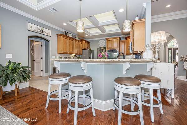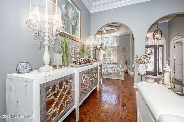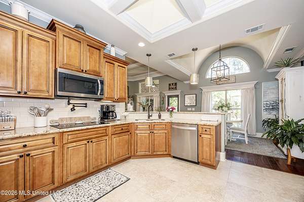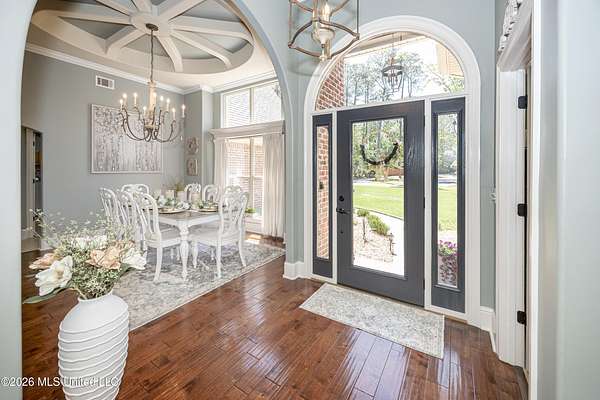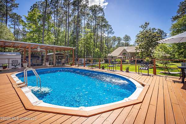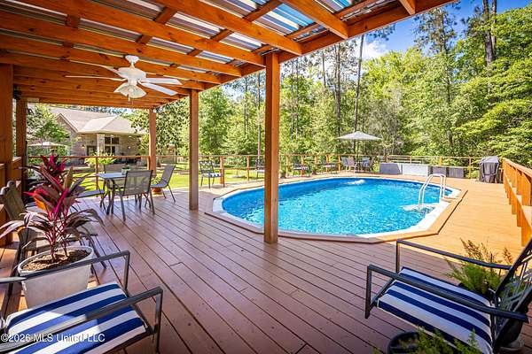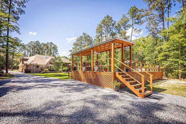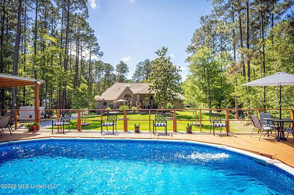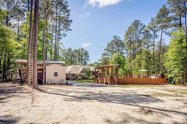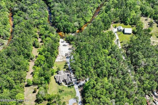 This isn't your typical home--this is a statement. Set on 2.9 serene acres along Tuxachaine Creek, this custom-built 5-bedroom, 3.5-bath estate delivers almost 3,000 square feet of intentional design and elevated living. Every room tells a story with its own distinctive ceiling detail--no corners cut, no cookie-cutter here. This private retreat features soaring 10' and 12' ceilings, beautiful crown molding, stone countertops, fireplaces, walk-in closets, surround sound system, and a long list of other amenities. Behind the electric gate, you'll find a property designed for both escape and entertainment. Lounge by the pool, take in the peaceful surrounding by the creek, or just relax on the spacious covered back patio by the fireplace. The setting is quiet, secluded, and completely your own. Rarely do homes like this hit the market--bold design, acreage, water views, and privacy all in one. This one has ALL the bells and whistsles, and will make you feel worlds away (yet very close to modern conveniences, shopping, dining and more).