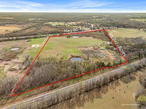 Beautiful 30.7± acre tract ready for your dream home in East Texas. This AG-exempt property offers productive hay pasture and is well-suited for livestock, recreation, or a small farm operation. A large historic red barn—estimated by the seller to be approximately 100 years old—features original grain bins, a hay loft, and an alleyway for convenient equipment storage. Electric service includes two 200-amp disconnects on a single meter, with 100 amps currently serving the barn and the second available for a future home or additional barn. The property is supported by a 280-ft-deep water well producing approximately 45 GPM with an oversized 5-HP pump according to seller. Two ponds provide water for livestock and excellent fishing for family and guests. Conveniently located just 44 miles from Dallas and only 2 miles from Edgewood schools and shopping, this property offers the perfect combination of country living and accessibility with approx. 1200 ft of frontage on SH 80..