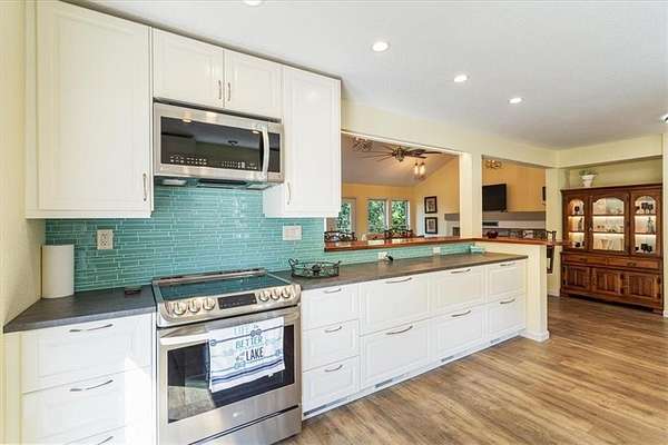 LG appliance suite, soft close drawers/cabinets. Large 63 SF laundry room. Office could be converted to third bedroom. Two HVAC units. New water heater/water softener. 225 SF front porch, 400 SF carport, 825 SF deck. 210 SF walk-out basement is a bonus room remodeled 2025.7 min drive to dock.