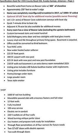 Optional 10'x26' boat slip for additional monies (possible owner financing). 1600 SF red iron building, insulated, wood heat, electric doors, 100-amp service. Home was completely reconfigured/remodeled in 2017, w/ 1000+ SF added. Every room has a view of Beaver Lake