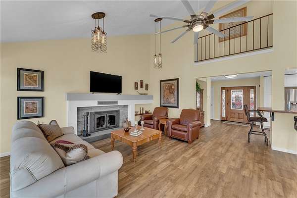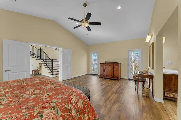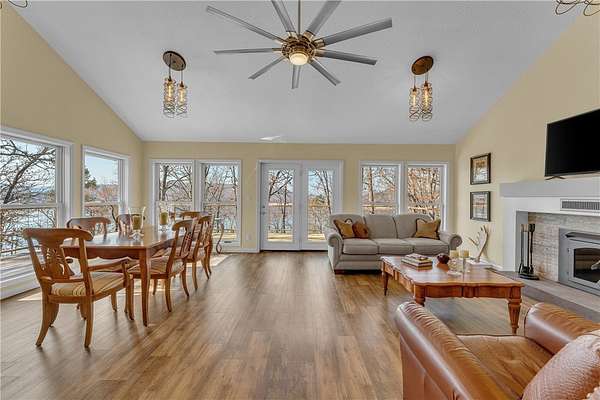 Stunning waterfront home on Beaver Lake with 382' of gently sloping, park-like shoreline, just 250' from the home to the water's edge, including a 10' x 26' boat slip in the community dock. Completely reconfigured and remodeled in 2017 with over 1,000 sq. ft. added, this exceptional home blends modern updates with functional design and custom craftsmanship. The open main-level layout features a specious living room with forced-air fireplace, dining area, kitchen, primary suite/bath, laundry room, and powder room, all designed for comfort and convenience. The second floor includes a guest suite/bath, and separate office. A bonus room remodeled in 2025 provides flexible space for a game room, guest room, or hobby area. Nearly every room offers panoramic Beaver Lake views, creating a stunning backdrop for daily life. The 1,600 sq. ft. insulated, heated shop offers space for hobbies or storage, while the landscaped grounds complete this lakefront retreat, perfect for relaxing and enjoying everyday lake life.