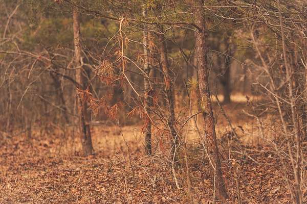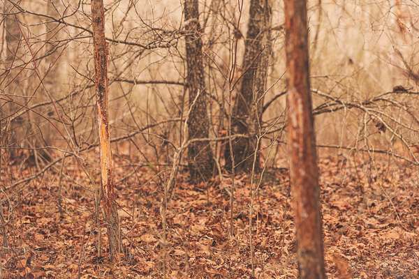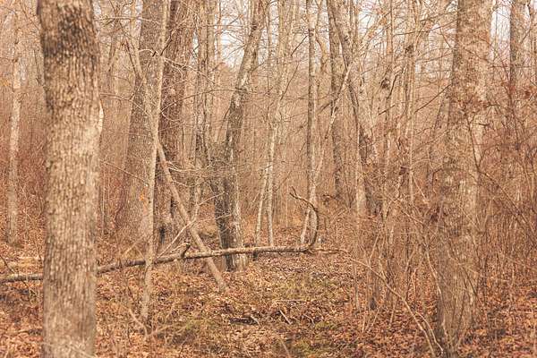 On my first visit to the property, I was impressed at the number of deer rubs, scrapes, and overall signs. I knew there were some really good deer in this area, but the rubs on every trail and creek bottom seem to be backing that up! While walking the land, I jumped several groups of deer, to the tune of around 20! Currently, there is a mowed field just under an area that nearly connects to another old food plot. There is an old shooting house platform there, showing the history of the farm. With the young timber, it wouldn't take much effort to combine these two openings for a really nice 2.5-3 acre food plot to provide food for the local deer. There were still plenty of white oak acorns and some small red oaks on the ground.