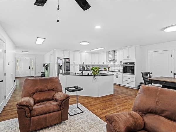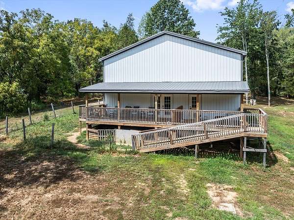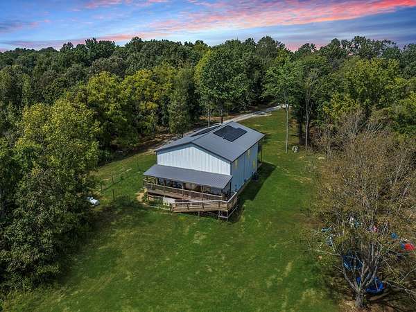 Completed last year, this 2-story retreat is tucked away on over 41 wooded acres, hidden from the road for privacy and seclusion. Designed with comfort and self-sufficiency in mind, the home is equipped with roof solar panels to help reduce energy costs and support sustainable living. The 2-story front porch is perfect for quiet mornings, while the back deck stretches the length of the home for evenings surrounded by nature. Inside, the spacious kitchen features timeless white shaker cabinets, gorgeous appliances, and an oversized walk-in pantry, flowing into the family room with built-ins and a cozy fireplace. A tiled dog room with a large dog bath adds a unique touch for pet lovers. Both levels include a primary suite with its own laundry, spa-like bath, and oversized closet. Upstairs offers a second family room with another fireplace, Outside, the mostly wooded land offers room to roam along with a 28x30 building. This is more than a house - it's a lifestyle. Call SARA SPENCER today