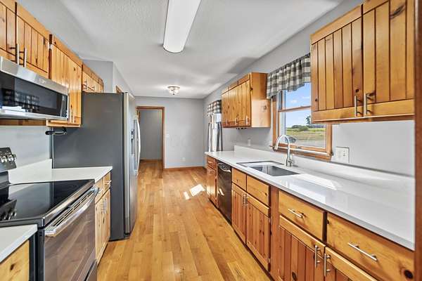 Est $4,021/moWelcome to your chance at a slice of heaven. This 3 bed 2 full bath ranch sits on just over 6.5 acres and is located minutes from the highway. The galley kitchen offers stone countertops and dark stainless appliances. The primary suite offers a full bathroom and a walk-in closet. The additional two bedrooms are large with plenty of closet space. The living room is open to the dining area and consists of beautiful, hardwood floors. Outside, you will find a 30' x 48' pole barn with concrete floors and a 30' x 40' horse barn with 3 stalls. Don't miss your chance at this wonderful home!