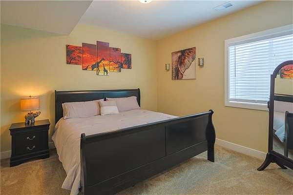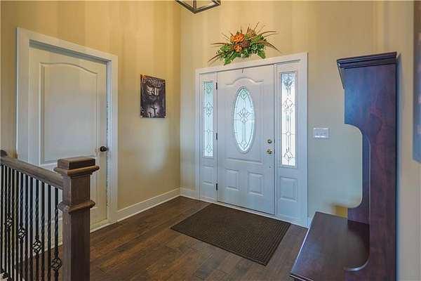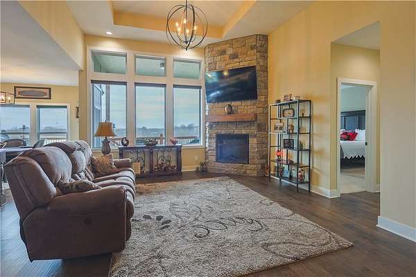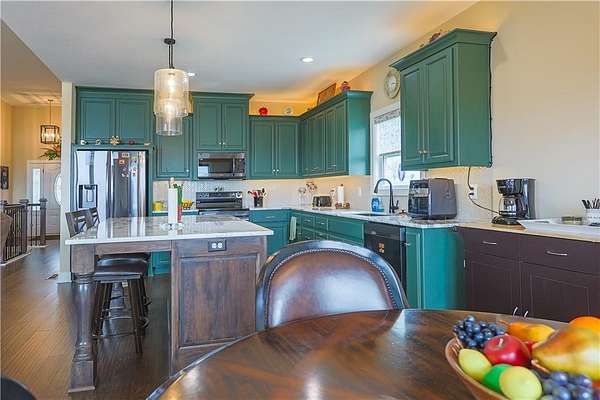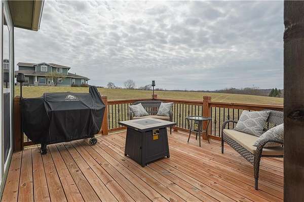 Country living at its finest-without sacrificing convenience! This better-than-new reverse 1 1/2 story sits on 4.6 scenic acres with trees, trails, and unforgettable sunset views from your covered back deck. Step inside to an inviting open floor plan with everything you need on the main level. The kitchen shines with granite countertops, a center island, and plenty of space to host family and friends. The primary suite offers deck access and a large walk-in shower, double sinks, and makeup vanity. Downstairs, the finished walkout basement is perfect for entertaining or relaxing, featuring a family room with wet bar, full bath, bonus room, two additional bedrooms and storage room. Peaceful setting, hard surface roads, and just a short drive to town-this one checks all the boxes!