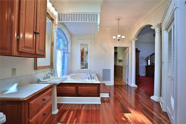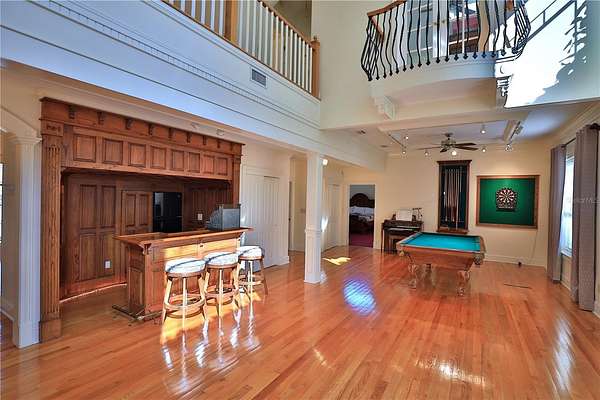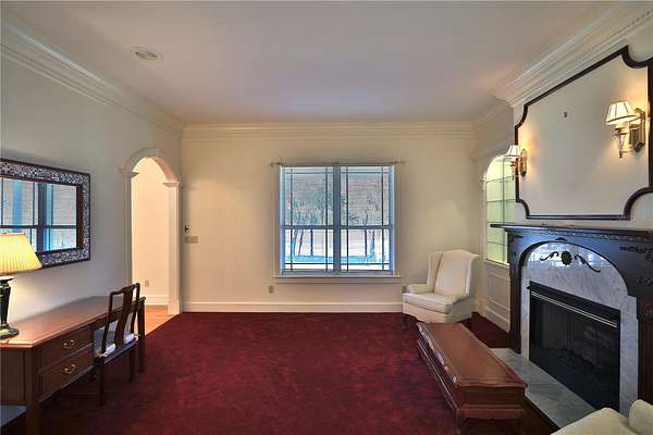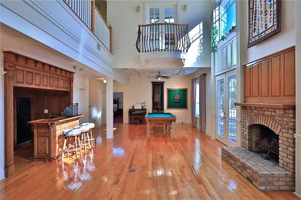 This estate features 5 bedrooms and 3.5 baths, with the first floor being the heart of the home, providing a spacious 2-story ceiling height, with a grand central sitting gathering room, fireplace, and well-appointed bar, making it an exceptional space for hosting, entertaining, or enjoying game days with family and friends. The primary suite is designed as a true retreat. The suite offers a fireplace and a luxurious bath. The formal living space is perfect as an office or sitting room, and the formal dining room adds timeless elegance and flexibility for both everyday living and entertaining.