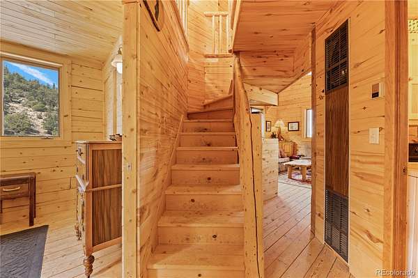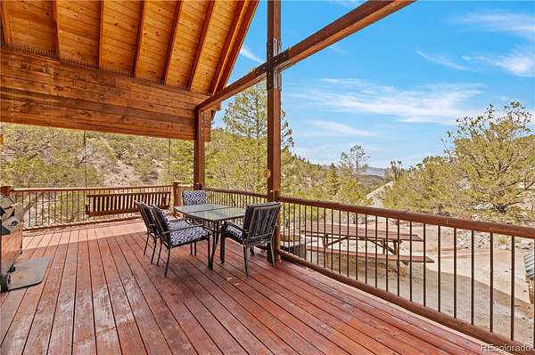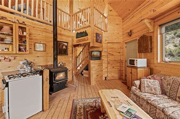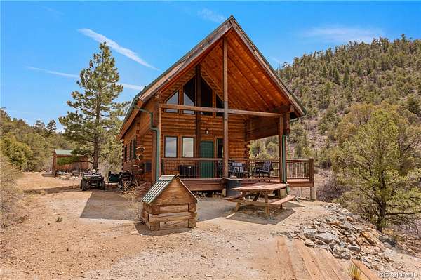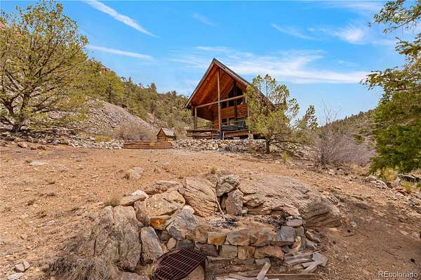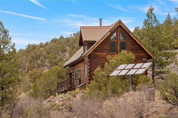 This exceptional property boasts seven patented mining claims, encompassing 66.4 acres of pristine Colorado wilderness. With exclusive deeded road access on Austin Trail, a locked National Forest gate keeps all other motor vehicles away, ensuring your privacy and seclusion are guaranteed. This property is situated near the revered Browns Canyon National Monument and offers unparalleled access to nature's wonders. Step into the charming 832 sq ft cabin, crafted entirely of solid wood, featuring custom pine D-logs, aspen and pine tongue-and-groove walls and ceilings, and finished aspen banisters. Two bedrooms, one full bathroom, a roomy loft, a full kitchen, and a living room combine for a comfortable space for you and the family. Cozy up next to the wood fireplace in the wintertime with great year-round access. Embrace off-grid living with the Sun Tracker solar system, and a very productive domestic well. The well permitting allows for two additional buildings to be connected to the well, as well as the watering of livestock. Indulge in outdoor living on the wrap-around porch, relax on the suspended porch swing, or gather around the custom fire circle below the cabin for nights under the stars. The cabin offers iconic Rocky Mountain scenery, with clear views of the Collegiate Peaks. Delve into the area's rich history with access to multiple retired mines, including the Red Fox Mine, boasting over 100 yards tunneled into the mountainside. Gold medal fishing on the nearby Arkansas River and incredible hunting access to the surrounding National Forest within Colorado Game Management Unit 57. The mixed habitat hosts abundant wildlife, including elk, mule deer, bighorn sheep, bears, turkeys, mountain lions, and more. Enjoy nearby mountain biking to world-renowned rafting, or relaxation time at the natural hot springs all within the Salida area. Whether you seek a weekend escape or year-round living, this property offers the perfect blend of tranquility and adventure.