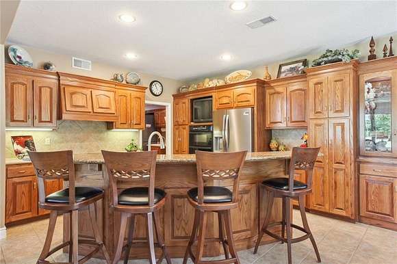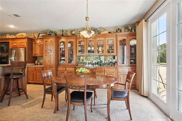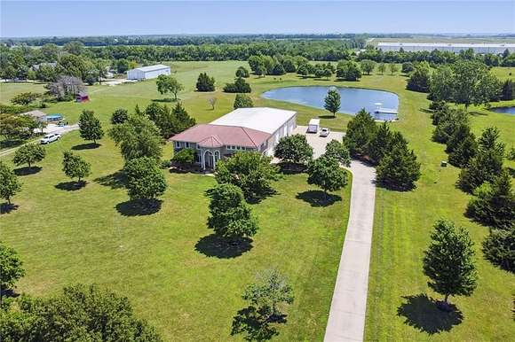 SELLER says bring ALL OFFERS it's TIME TO SELL, 10 acs Oasis. New windows, heated tile floors, custom kitchen cabinets w/island. Kitchen melds directly into dining room w/ the same cabinets including built-ins encasing the great room TV. A butler's pantry is adjacent to the kitchen! An additional 2nd floor master w/ bathroom; an adjacent room could be easily repurposed w/ a sitting room & kitchenette to create a large master suite. The home sports 3 heating systems; floor heat, a propane furnace, & a heat pump. 2 of the upstairs bedrooms have an entry way that has separate heating, cooling, & hot water heater that can be closed off if not in use. Instant hot water to all faucets is provided by a recirculating pump. All interior & exterior walls are 6" thick making the home extremely quiet. The stucco facade has color mixed in, providing permanent color. The tile roof is rated at 50+ yrs. The 1 acre pond is 16 ft. at it deepest to keep the fish alive all winter. The pond is stocked with Bass, Channel cat, Blue gill, Hybrid Blue gill and Red eared rock crushers. The pond is spring fed, very clear & well maintained. The home took 2 yrs to complete, finished in 2001. The back 1/3 of the property is seeded in brougham. Too many other details to reveal, it's a MUST SEE! CAR ENTHUSIAST DREAM space for more than 20 cars under one roof. Keep your collection & work space close to you. Paint booth, engine hoist, & special work room in a 60 x 100 heated & air conditioned shop(all have concrete floors) with 3 separate sections. There are 4 overhead doors along the south side. Garage/shop has a double 8' doors, two 16' doors, & on the end a double 12' door. The garage on the end has a spacious shop on the 2nd floor approx 1200 sq. ft. 2 garages have finished sheet rocked walls. The 2nd bay has space to park a full size RV w/sewer dump & 50 amp service. In addition, 2-50 amp service & dump for guest on the outside pad. Multiple doors provide accessibility to the 100 ft. long shop.