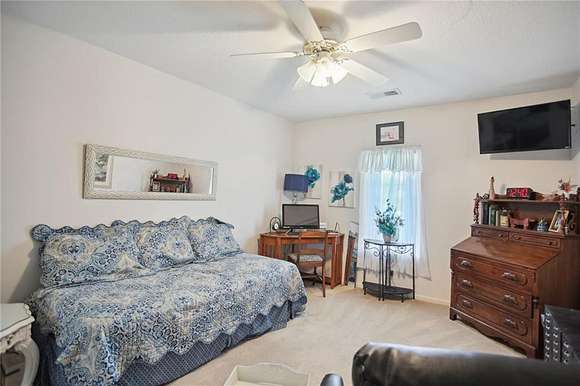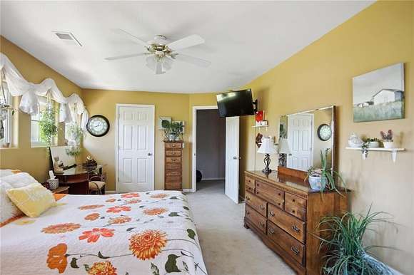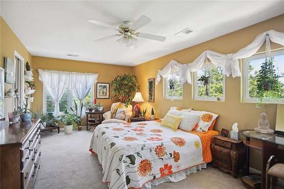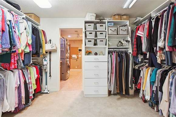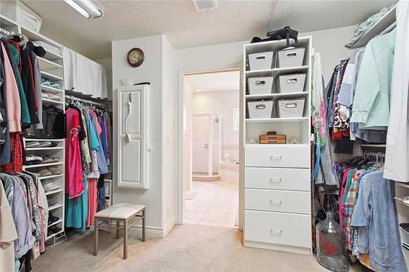 - Ceiling Fan(s), Custom Cabinets, Kitchen Island, Pantry, Stained Cabinets, Walk-In Closet(s)