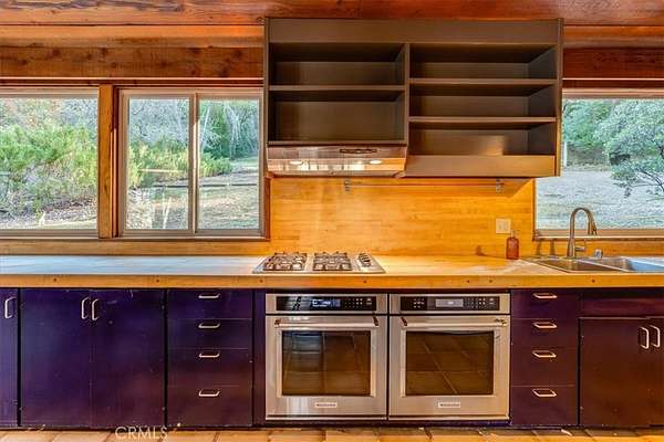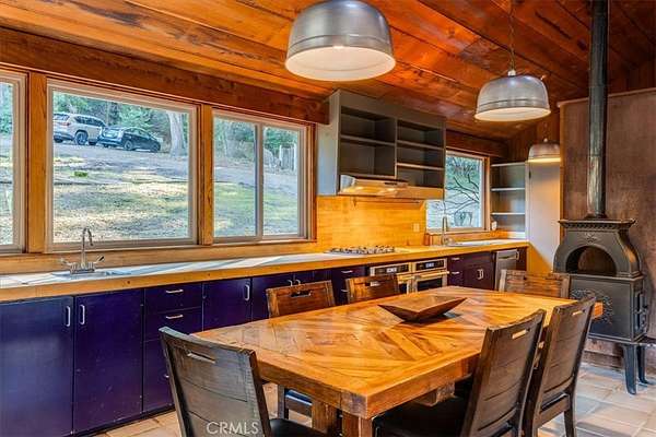 The heart of the home is an open kitchen with dining area, flowing into an oversized living room anchored by a central fireplace, perfect for meditation, reading, or unwinding after a day of exploring the Central Coast. Whether you’re gardening, wandering the woods, or simply enjoying the quiet, this property offers endless opportunities to create a life rooted in nature and privacy.