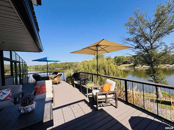 LUXURY LAKEFRONT LIVING AT ITS FINEST - 5 BED | 4 BATH | STUNNING VIEWS Welcome to your dream retreat -- where modern luxury meets the serenity of lakeside living. This exquisite 5-bedroom, 4-bath custom home offers elegant design, impeccable finishes, and panoramic water views from nearly every room. Relax in the spacious master retreat featuring a spa-inspired en-suite with an oversized walk-in shower, dual vanities, and a generous walk-in closet complete with a convenient laundry nook. Chef's Kitchen with a View: The heart of the home boasts a gourmet chef's kitchen with high-end appliances, sleek countertops, and a charming breakfast nook offering 180? lake views -- the perfect setting for morning coffee or evening wine. Soaring floor-to-ceiling windows flood the home with natural light and provide uninterrupted lake views from every angle, seamlessly blending indoor comfort with outdoor beauty. A spacious 3-car attached garage features stunning glass doors, adding a modern architectural touch and plenty of storage. Also a second 2 car garage as well! Enjoy two expansive main-level patios, ideal for entertaining or quiet nights under the stars. Unwind around the built-in fire pit, or take advantage of your private boat dock just steps from your back door. Workshop Perfect for DIY projects or hobbyists, with ample space and storage. Host game nights or unwind with family in the large rec room featuring a cozy fireplace and custom wet bar and large home theater!