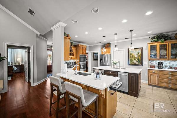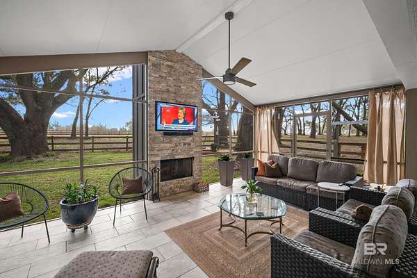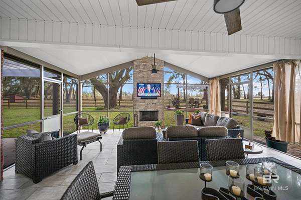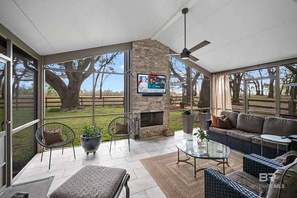 Gorgeous Custom Home on 5 of the most beautiful oak covered acres in Baldwin County. The gate just enhances the serene neighborhood.This property is fenced for your horses and the paddock has 3 stalls and a tack room.Enter the double Mahogany doors into your Foyer and Dining room is to the left. You walk straight into the Living room with its vaulted ceilings with Gas fireplace flanked by bookcases, and a full wall of windows that look out onto your screened porch. Huge breakfast area with a gourmet kitchen complete with stainless gas cook top, dishwasher, built in oven and microwave and refrigerator. There is a great pantry for all your needs. Master bedroom is complete with an incredible bath and the other 2 bedrooms have their own on-suite baths. A large laundry and office complete the downstairs. Upstairs is an incredible bonus room with its own half bath.The home is topped off with an over-sized garage. Bring your horses and enjoy this designer decorated home. Buyer to verify all information during due diligence.