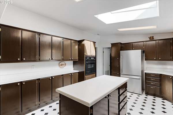 - Builtin Oven, Dishwasher, Free Standing Range, Free Standing Refrigerator, Island, Microwave