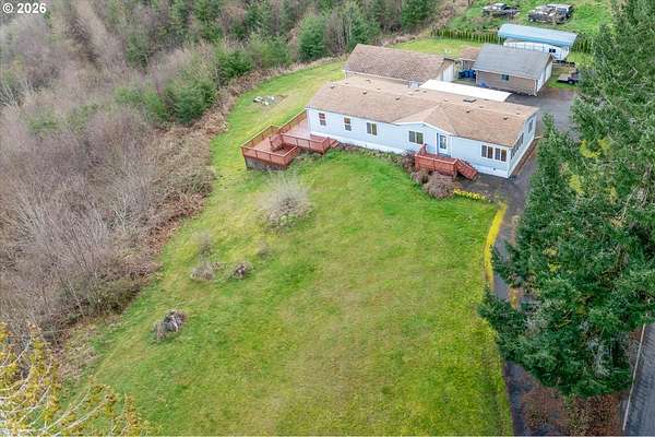 This property truly has it all; space, views, and functionality. Enjoy easy living in a generously sized home with an open floor plan, where abundant windows and skylights fill the interior with natural light. Step outside onto the expansive wraparound deck and take in sweeping views of the river and surrounding wooded hills, where deer and elk are frequent visitors. Set on 5.7 acres, the property offers plenty of room to spread out, entertain, or simply enjoy the outdoors. The large yard is ideal for gatherings, pets, and everyday living, complete with a dedicated fenced dog run. For those needing space for vehicles, hobbies, or projects, this property delivers. A paved half-circle driveway provides easy access to two separate garages: a 24x24 garage and a 24x35 garage/shop along with a large RV carport, offering exceptional parking and storage flexibility. All of this conveniently located just 10 minutes from I-5 and close to Kress Lake for fishing and recreation. A rare combination of privacy, usability, and proximity. 3 Bed 2 Bath 5.7 Acres with Views.
