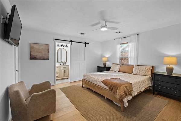 Fully furnished home on 20 acres with amazing view. All utilities + internet included in rent. Newly renovated, furniture is brand new. Available for month to month until May 1. Move out date flexible. Master bedroom: Full bathroom, walk in closet, king size bed, tv; Bedroom 2: King size bed, closet; Bedroom 3: Four twin beds (bunked). Three full bathrooms total; Multiple living areas, multiple dining areas; Fully stocked kitchen; Washer, dryer, fridge, all kitchen appliances. Cozy front porch with swing and rocking chairs to enjoy the peaceful view; back deck and fire pit. Enjoy quiet country living on 20 acres, there's even sheep in the pasture! 12 minutes to downtown Farmington and Prairie Grove. 22 mins to U of A; 25 mins to Washington Regional medical center; 40 mins to wm home office.