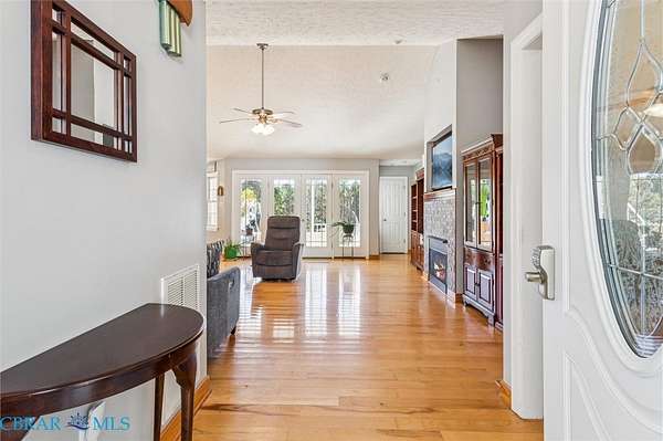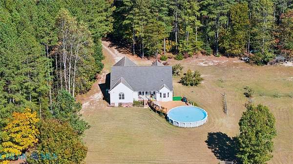 Don't miss this incredible opportunity to own over 15 acres of your very own countryside paradise, perfect for farming, horses, hunting, or simply room to roam and play! This single-story, 3bed, 2bath open-concept home has been lovingly maintained & thoughtfully updated over the years. Inside, you'll find black granite countertops, hickory wood floors, SS appliances, spacious laundry room & oversized garage - all designed for easy, comfortable living. Primary suite offers a peaceful retreat w/jetted soaking tub for ultimate relaxation. You'll enjoy a concrete driveway, house generator for peace of mind & above-ground pool just off the rear deck, ideal for entertaining or unwinding after a long day. Venture further & discover a treehouse/hunting stand, a stable which is currently used as storage for the orchard, garden & chickens. With its perfect blend of modern comfort & country charm, this property is a rare find. From fruit trees to homegrown berries, it is a serene retreat with space to live, play, and thrive!
