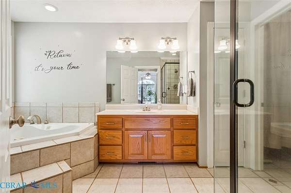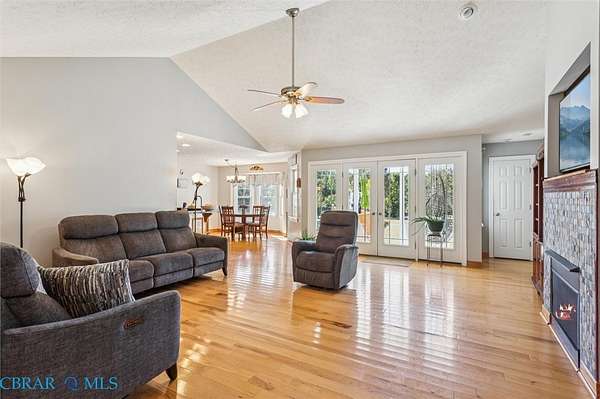 - Cathedral Ceilings, Ceiling Fans, Dining Area, French Doors Atrium Doors, Granite Counters, High Ceilings, Jetted Tub, Main Level Primary, Pantry, Recessed Lighting